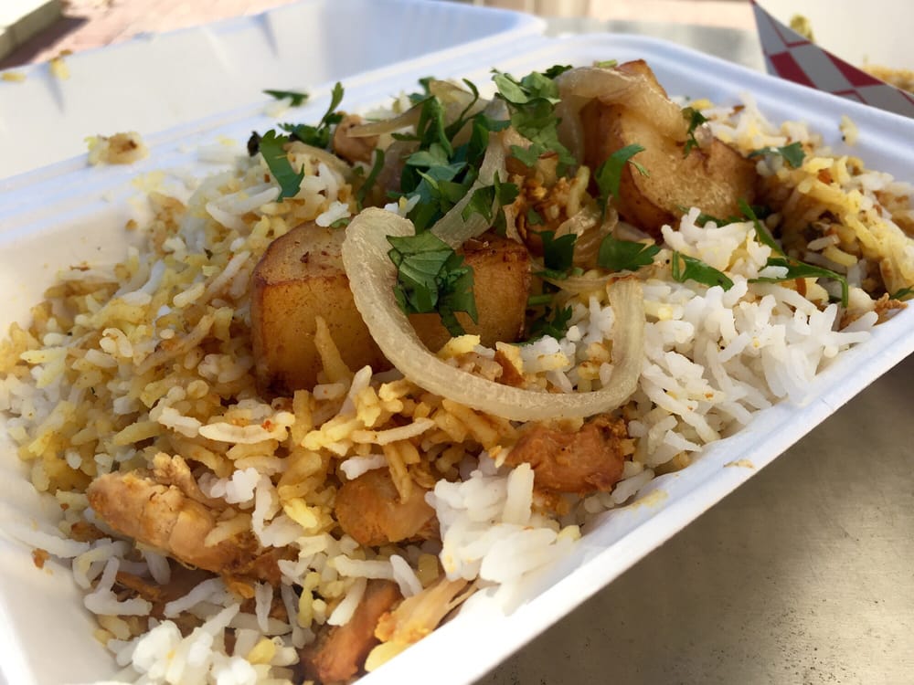 Dum Truck serves Indian soul food, where chef Rupam Bhagat prepares family recipes with a touch of his Culinary Institute of America education. There’s a variety of kati rolls that wrap lamb, spinach, chicken or paneer in thin parathas and biryanis that layer meat and basmati rice.